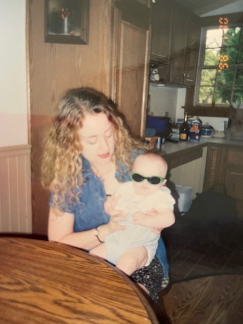 Here is me holding a friend’s baby, whose identity is obscured by his sunglasses and also by the fact that he is nearly thirty years old now: