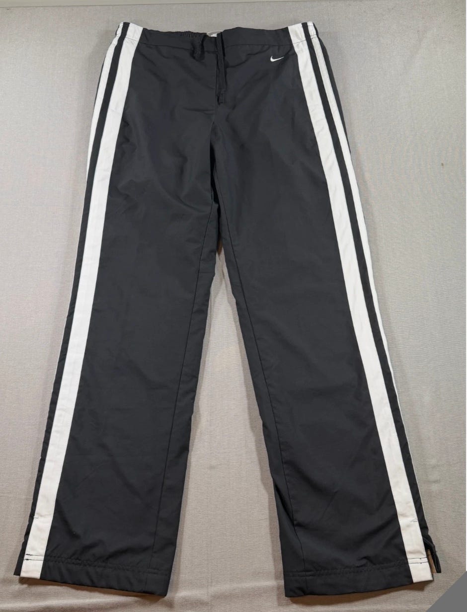I am not doing a lot of buying at the moment, but I did pull the trigger on a pair of Y2K-era Nike wind pants, finally. I’d watched them until the listing ended and they got relisted at a slightly lower price. Music to my ears!