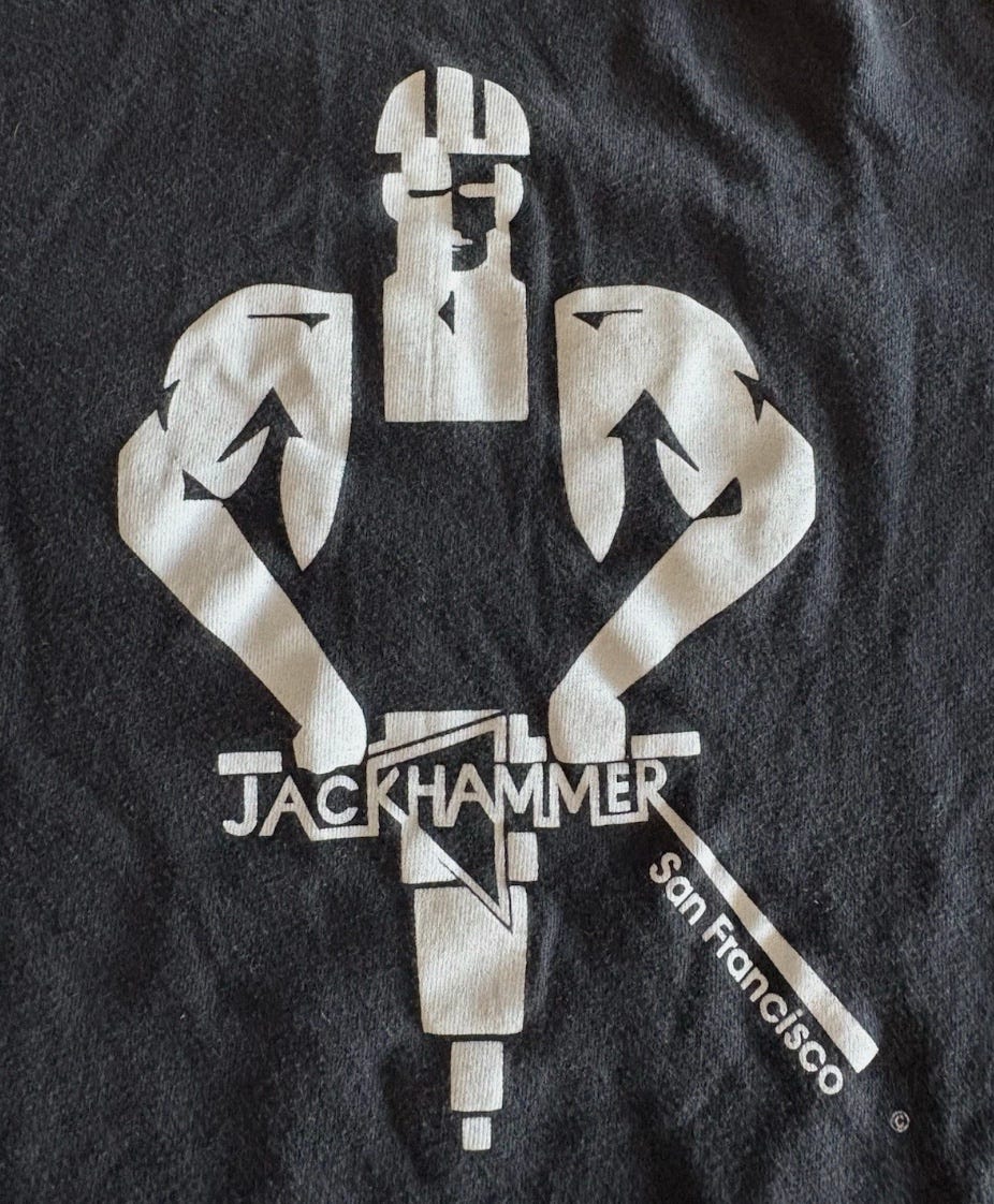 And finally, while I suspect I am not the target audience for this shirt from San Francisco’s Jackhammer bar, you cannot deny the design is very good: